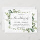 Este convite para o casamento mostra a cor d'água do eucalipto, folhas verdes com caligrafia moderna. Para personalização mais avançada deste design, clique no link "Personalizar mais". Itens correspondentes também estão disponíveis.