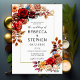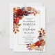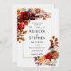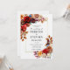 Um convite de casamento moderno e elegante com um tema de rosas vermelhas e flores de outono para outono/outono, com flores de aquarela e verde. Rosas vermelhas e cravos vermelhos profundos contrastam com mães de cobre e laranja, borrifadas com rosas bege e outras flores e verde nas cores da queda: ferrugem, laranja queimada, terracota etc. e todo o conjunto faz um design clássico para um casal moderno.