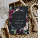 Nosso convite para o casamento do Plum Blossom envolve seus detalhes do dia do casamento com um quadro geométrico de flores pintadas de cor d'água em burgundy marsala, cor-de-rosa e azul-marinho, com folhagem botânica verde e folhas de eucalipto em fundo escuro. Uma bela escolha em cores exuberantes para o outono ou casamentos no inverno.