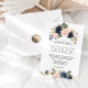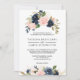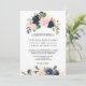 Este belo convite de casamento floral é perfeito para um casamento tropical. O design retrata uma pincelada rosa desenhada à mão, azul escuro e flores brancas marinhos, inspiradoras elegância, classe e beleza natural.