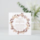 Um simples quadro de folhas de outono rodeia seus detalhes de casamento. O texto é uma fonte clássica de serifa vermelha e arrojada. O tom de terra mudo e neutro deixa criar uma vibração elegante para o seu casamento de outono ou Ação de Graças. Este item faz parte da coleção de Folhas de outono Elegantes.