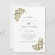 Um convite elegante para o casamento, que inclui disposições de canto dos ramos de oliveira com azeitonas pretas e folhas verdes, num fundo branco limpo. Personalize com seus detalhes em cinzas escuras.