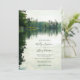 Esta risada carta de convite de casamento evergreens, criada de uma das minhas fotografias pessoais de caiaque, apresenta uma bela cena rústica sob um céu coberto com água levemente ripada mas calma refletindo verdes distantes, árvores de cedro e estruturas de rocha, perfeita para uma montanha, lago ou celebração de casamento ribeirinho - por katz_d_zynes