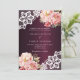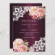 Para um casamento elegante e romântico. Um fundo de gradiente arrojado profundo decorado com flores, rosas e rendas de ouro rosa e rosa. Personalize e adicione seus nomes e detalhes.