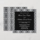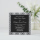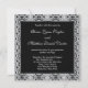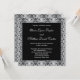 Convite de casamento preto e branco com sobreposição prateada quadrada preto e branco.