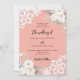 Para um casamento elegante e romântico. Um fundo cor-de-rosa coral decorado com flores, rosas e rendas brancas. Personalize e adicione seus nomes e detalhes.