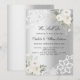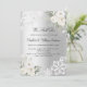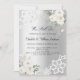Um convite à renovação de votos moderno e elegante. Um fundo com aspecto fino prateado decorado com flores, rosas e rendas brancas. Personalize e adicione seus nomes e detalhes.