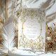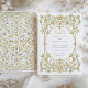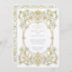 Este elegante convite para o casamento apresenta uma intrincada estrutura de escrolagem de ouro adornada com flores de aquarelas moles em azul-claro, pêssego, sábio e azul-de-flor. Inspirado pelo Rococó clássico e pela arte botânica europeia, o quadro graciosamente arca em torno do texto do convite, evocando a aparência do ferro de forra antiga descartado em vinhas florescentes. A design do dorso apresenta uma composição radial rica em detalhes com flores giratórias, folhas estilizadas e florescimento formando um medalhão simétrico. As texturas pintadas à mão e a paleta pastel dão a esta suíte um encanto romântico. Ideal para casamentos formais de jardim, eventos de primavera ou de verão, ou casais que buscam uma estética de safra refinada.