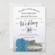 Este maravilhoso convite para o casamento apresenta um design floral moderno com um solteiro azul-céu, turquesa ou rosa de cor azul-azure que está do seu lado refletindo em uma piscina com ondas e ondulações. A design é simples, elegante, romântica e sofisticada, com caligrafia antiga e conteúdo totalmente personalizável.