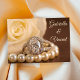 Convide convidados para os vossos núpcias com o elegante Concurso de Casamento Oval Diamond e White Rose. Personalize-o com os nomes da noiva e noiva e detalhes específicos da cerimônia de casamento. Este clássico convite de casamento botânico personalizado apresenta uma fotografia floral próxima de um anel de noivado de diamante oval, colar de pérolas brancas e flor de rosa branca num fundo de seda marrom.