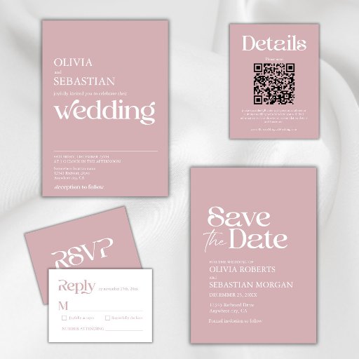 Convites Casamento de Rosa com pografia mínima moderna e en