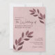 Estes elegantes convites para o casamento apresentam um design rústico, porém moderno, com ranhuras de rosa poeirento pintado à mão ou de folhas cor-de-água rosa-rosa-mauve entrando de ambos os lados do cartão. A tipografia é única e elegante, com textos justificados tanto à esquerda como à direita. Simples e na moda, estes convites são uma maneira maravilhosa de incluir sua família e amigos em seu dia especial.