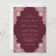 Estes elegantes convites para casamento de rosa e burgundy, com rendas florais de ouro rosa em fundo de burgundy, são perfeitos para convidar os seus convidados para a sua festa de casamento rústica de burgundy e ouro rosa.