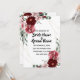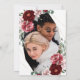 Rosas de Borgonha e Esmagamento com folhas verdes e sotaques de ouro. Personalize e personalize para seu dia especial de casamento, incluindo uma foto do casal feliz!