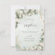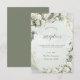 Rosas brancas elegantes em um fundo verde sage. Selecione o botão "personalizar" para alterar o estilo, cor e tamanho da fonte.