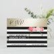 Convite de resposta de casamento com rosas em aquarela com listras pretas/brancas douradas e modernas.