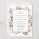 Convites florais elegantes com seus nomes e detalhes de casamento emoldurados por rosas brancas cremosas, orquídeas cor-de-rosa escamosas e mauve, folhas verdes e folhagem. Os convites de casamento românticos são perfeitos para casamentos de primavera e verão. Projetado para coordenar com nossa coleção de casamento de Rosas de Aquarela e Orquídeas.
