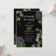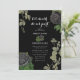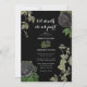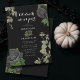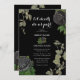 Um design de casamento com rosas pretos e vinhas penduradas no Halloween gótico. Um design de Halloween que usa florais botânicos negros e escuros junto com a tipografia da caligrafia de vintage. Um design gótico na moda ideal para temas de casamento de Halloween. Um único design de convite de casamento de rosas negros. Também estão disponíveis itens de papelaria de casamento e outros formatos de convite de casamento.