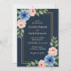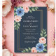 Convide seus entes queridos para comemorar seu casamento com este convite de casamento personalizado elegante e romântico. Lindas flores do estilo aquarela em pincel suave e poeirento abrigos azuis e rosas cor-de-rosa enquadram seus nomes em um sofisticado pano de fundo do marinho. Personalize com todos os detalhes essenciais do seu casamento para um anúncio de eterno.