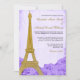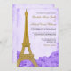 Convites Casamento de Rosas Roxos da Torre Eiffel Dourada V