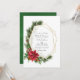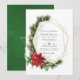 Convite de casamento de natal rústico da Tendy com quadro geométrico dourado e tipografia de escrita manual com sinos de trenó, flores de poinsettia, sagrada, concha e pinheiro. Ideal para qualquer tema ou casamento de jardim. O código QR no verso direciona para o seu local de casamento onde o pessoas pode aprender mais e rsvp.