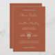 Design moderno e elegante imprimiu Convite de Casamento de RSVP de Código QR Simples Terracotta Queimado Minimalista e Simples Terracotta, que pode ser personalizado com seu texto. Clique no botão "Personalizar" e use nossa ferramenta design para modificar este modelo. Veja a Design de Arte Gráfica para outros produtos que combinam com este design!