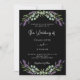 Um fundo preto decorado com flores lavandas e verde de eucalipto. Personalize e seus nomes e detalhes. Voltar: adicione o URL do site de casamento ao código QR para obter detalhes e/ou RSVP.