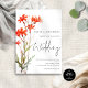 Casamento de Sábio do Roteiro Elegante de Flores Selvagens Vermelhas. Disponível digitalmente e impresso. As flores balneares russas fazem fronteira com a esquerda, com um conjunto de textos manuscritos para o casamento e o resto do texto que você pode facilmente personalizar. .