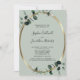 Eucalyptus All in One Website RSVP Dourado Convite de Casamento Metálico.. Nosso convite de casamento botânico luxo "Tudo em Um" apresenta uma estrutura oval metálica dourada embelezada com folhas de eucalipto abarrotadas de esmeralda sobre um fundo verde-claro. A frente do convite também inclui o site de casamento onde seus convidados podem RSVP e ver todos os detalhes normalmente enviados em um pacote de casamento. Este convite de casamento ao estilo moderno foi concebido para ser elegante e consciente do orçamento... para não mencionar a poupança de tempo. Todo texto de exemplo pode ser facilmente revisado com suas próprias informações sobre o modelo de personalização.