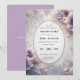 Celebre seu amor pela elegância encantadora do inverno. Este convite de casamento apresenta uma mistura sonhadora de sotaques de prata e florescências de ametista macio, delicadamente depilados com geada cintilante. As flores etéreas e os flocos de neve misturados enquadram seus detalhes de casamento com sofisticação do eterno, criando uma vibração romântica do inverno. Perfeito para casamentos no inverno.