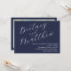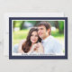 Simples convite de casamento de fotos minimalista em azul marinho com um roteiro elegante de caligrafia para noiva e noivo.