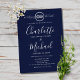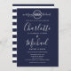 Apresentando um nó de navio e nomes de estilo de assinatura, este elegante convite náutico para casamento pode ser personalizado com suas informações em letras brancas em um fundo azul marinho. Projetado por Thisnotme©