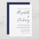 Este simples convite de casamento moderno apresenta texto azul marinho sobre fundo branco. Adicione os nomes da noiva e do noivo na caligrafia de escrita manual do na moda e os detalhes na fonte sans serif. O reverso é uma sombra correspondente de azul marinho sólido.