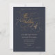 Convites Casamento de Script Azul e Dourado do Marinho Eleg