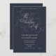 Convites Casamento de Script Azul e Silver do Marinho Elega