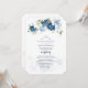 Convites Casamento de Script Botânico Floral Azul Dusty