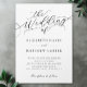 Convite de casamento clássico preto e branco com roteiro elegante e detalhes de caligrafia. Perfeito para comemorações eternos e sofisticadas.