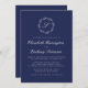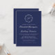 Convites Casamento de Script Branco Monograma Azul marinho