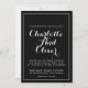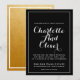 Adicione uma vibração elegante moderna ao seu convite de casamento com um estilo de caligrafia de script de swash em um fundo preto com tipo branco e cobertura de borda.