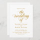 Este elegante convite de casamento branco e ouro é perfeito para um casamento moderno. O simples design apresenta uma elegante caligrafia dourada sobre um fundo branco limpo. O cartão de convite inclui os detalhes do casamento no verso, em vez de pagar um cartão separado.
