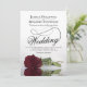 Este belo convite para o casamento apresenta uma linda fotografia de um solteiro de longo rosa empilhado estendido ao seu lado refletindo numa piscina de água com ondas e ondulações. O design apresenta um roteiro de caligrafia rico com um fazer de cauda longa e encaracolada, moderno e clássico. Uma maneira elegante, sofisticada e chique de convidar seus amigos e família para compartilhar seu dia especial. A parte de trás do cartão é um marrom torrado ou uma cor vermelha de vinho com um padrão de pelúcia.