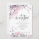 As elegantes aquarelas translúcidas flores em pinks e lilases delimitam o canto superior esquerdo e a borda inferior na frente com a tipografia definida para o cabeçalho, Convite em uma grande escritura de cinza moderna sobre um fundo branco com cinzas modernas. Na parte de trás está um movimento floral coordenado e salpicos. O resto do texto na frente que você pode personalizar facilmente para seus próprios detalhes e pode alterar essa cor de texto editável se desejar, por meio da opção Clique para personalizar mais. Você também pode estar interessado em nosso nome de convidado individual e folhas de adesivos de endereço nesta coleção para ajudar nas suas malas de núpcias.