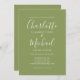 Convite de casamento de assinatura elegante com nomes de estilo de assinatura, este convite de casamento verde de na moda pode ser personalizado com suas informações em carta. Projetado por Thisnotme©