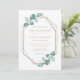 Este convite de casamento moderno apresenta um quadro de ouro acentuado pela pintura manual de impermeabilização eucalipto verde]. Personalize com seus detalhes de casamento na tipografia falsa de ouro. A parte traseira da placa tem uma estrutura correspondente às iniciais do seu monograma no centro. Os melhores votos para o seu casamento e casamento! Desenhada por Susan Coffey.