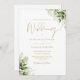 Esta elegante vegetação botânica do ouro deixa convite para casamento pode ser personalizada com suas informações em tipografia quica com seus detalhes no site do casamento e seu código QR no verso. Projetado por Thisnotme©