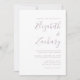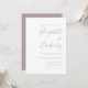 Este simples convite de casamento moderno contém texto de lavanda empoeirado sobre fundo branco. Adicione os nomes da noiva e do noivo na caligrafia de escrita manual do na moda e os detalhes na fonte sans serif. O lado inverso é uma sombra correspondente de lavandas poeirentas sólidas.