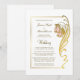 Um convite elegante de casamento em ouro que inclui uma armação em ouro ornamentado com um embelezamento em ouro com flores cor-de-rosa pinceladas como parte do quadro. Os locais de cerimônia e recepção foram incluídos juntamente com uma solicitação de RSVP. O texto é facilmente personalizado para que você adicione seus próprios detalhes conforme necessário.