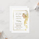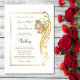 Um convite elegante de casamento em ouro que inclui uma armação em ouro ornamentado com um embelezamento em ouro com flores cor-de-rosa pinceladas como parte do quadro. Uma solicitação de RSVP foi incluída no convite para os convidados responderem. O texto é facilmente personalizado para que você adicione seus próprios detalhes conforme necessário.