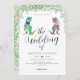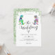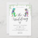 Se você e sua parceira amam dinossauros então esse convite para casamento do na moda de guião de dinossauro divertido é perfeito para seu dia especial. Com noiva de dinossauro colorida e noiva com folhagem de eucalipto de aquarela e modelos de escrita elegantes você pode adicionar a noiva e os nomes de noivos, a data do casamento e todos os detalhes importantes do casamento. As ilustrações divertidas e exclusivas de dino incluem o verde-roxo azul e o pêssego pintado de noiva T-Rex e o noivo vestindo um véu, gravata de arco e verde-botânico de cor-d-água em tons verdes com belo roteiro na moda moderno. Arte original da artista Catherine Sweetman