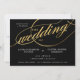 Convites Casamento de Script Dourado e Preto Moderno Único